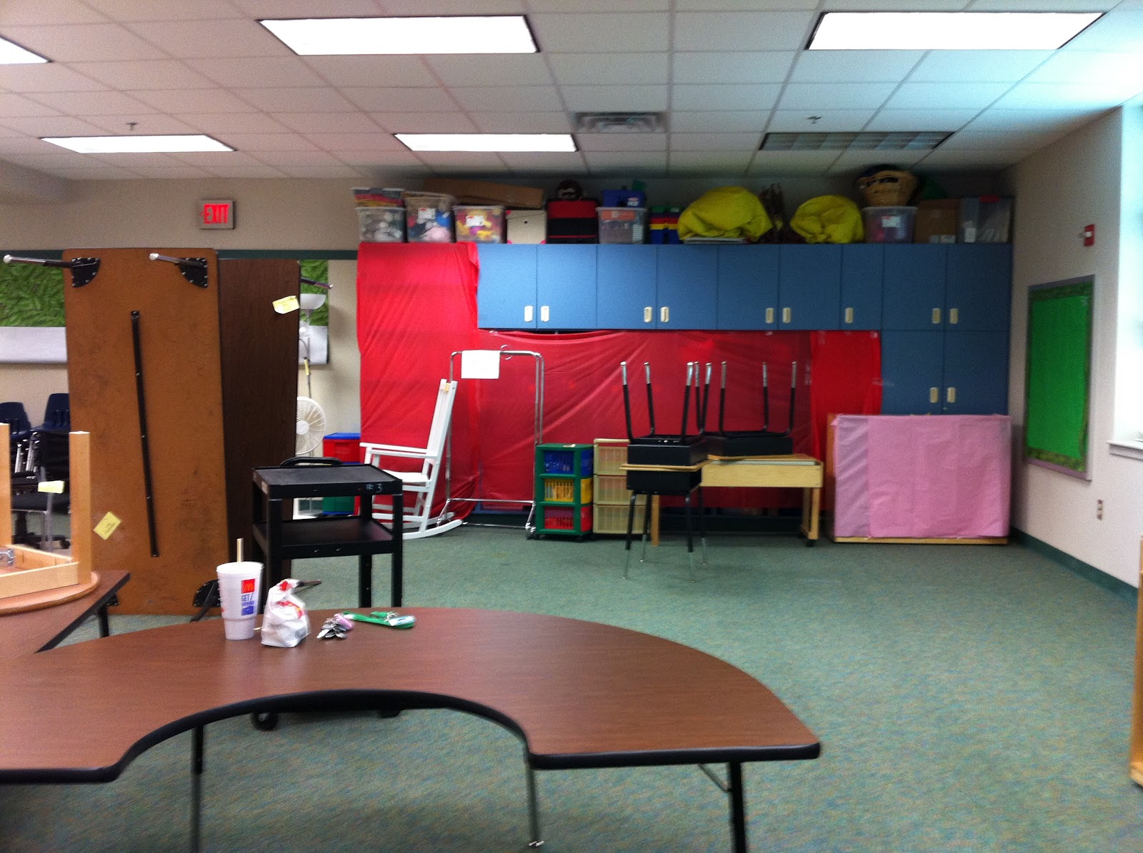 | First day... view from the entry. LOVE when the tables are upended. I'm always proud when I don't set them down on my own toes. |