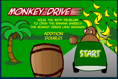 Below is a wonderful game found at Sheppard Software called "Monkey Drive." Students have to use the arrows on the keyboard to drive the monkey into doubles problems that match the monkey's car. Sounds strange, I know but trust me, they will love it! Give the kids some manipulatives to work out the problems as they drive the track looking for the answer and they'll be less frustrated and understand more.